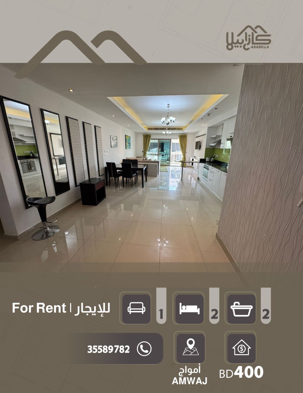للإيجار: شقة فاخرة في أمواج. تفاصيل الشقة: صالة عائلية كبيرة - مطبخ مجهز - غرفتا نوم - حمامان - بالكونة. المرافق والخدمات: مكيفات سبليت - مصعد - موقف سيارة مظلل - قريبة من جميع الخدمات - صالة رياضية - بركة سباحة. الإيجار: 400 دينار شامل الكهرباء والماء. للتواصل والاستفسار.