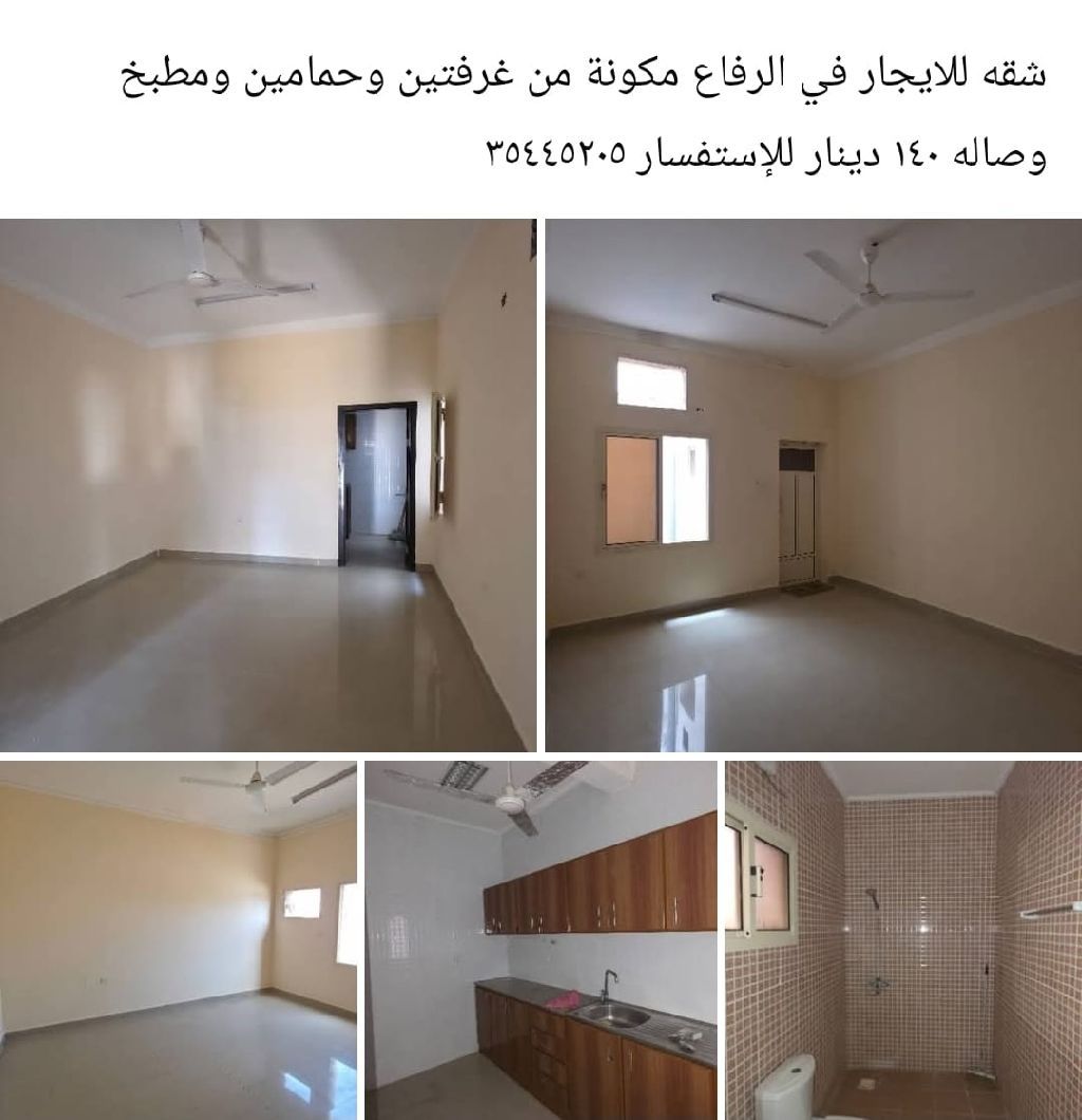 شقة للإيجار في الرفاع مكونة من غرفتين وحمامين ومطبخ وصالة بسعر 140 دينار.