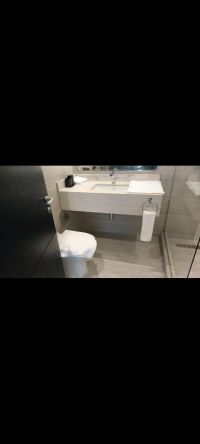 شقة للإيجار في الجنبية، 2 غرف نوم، 3 حمامات، صالة، مطبخ (مفروشة بالكامل، تشمل الكهرباء والماء)، موقف سيارات، مصعد، حارس، شقة مميزة جداً. الإيجار 500 دينار.