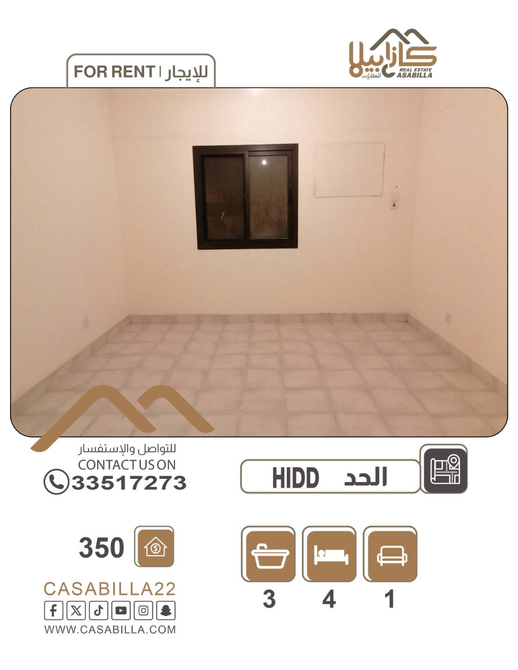 للإيجار: بيت في الحد القديم، قريب من المحطة وجمعية ودوار الجمعية. يتكون من 4 غرف نوم، صالة، مطبخ، و3 حمامات. سعر الإيجار 350 دينار شامل الكهرباء والماء بدون أثاث. ملاحظة: المواقف عامة. التواصل للمزيد من المعلومات.