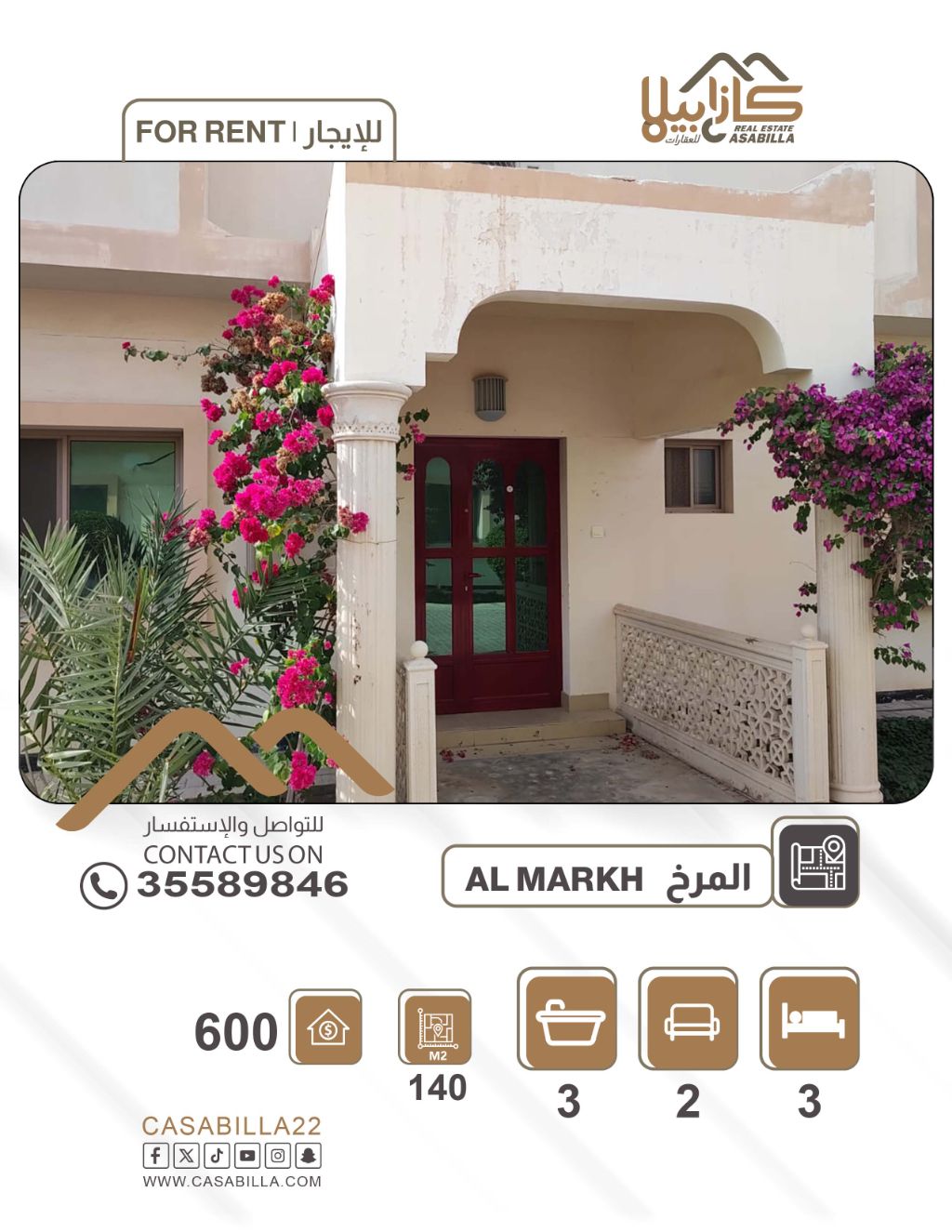 شقة للإيجار في المرخ - جديدة وراقية. شقة مميزة في منطقة هادئة تتكون من 3 غرف نوم، 3 حمامات، صالتين واسعتين، مطبخ مجهز بالكامل، سطح للتهوية والزراعة، نصف مفروشة، وتشمل مكيفات، فرن ألومينيوم في المطبخ، غسالات. المساحة: 140 متر مربع. سعر الإيجار: 600 دينار بحريني، يشمل الكهرباء والماء. الموقع: المرخ. للتواصل والاستفسار.