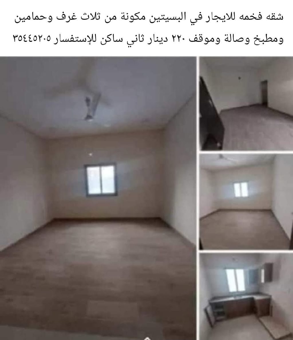 شقة فخمة للإيجار في البسيتين مكونة من ثلاث غرف وحمامين ومطبخ وصالة وموقف 220 دينار ثاني ساكن