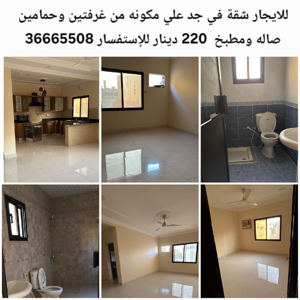 للإيجار شقة في جد علي غرفتين (وحدة ماستر) وحمامين ومطبخ وصالة بـ 220 دينار.