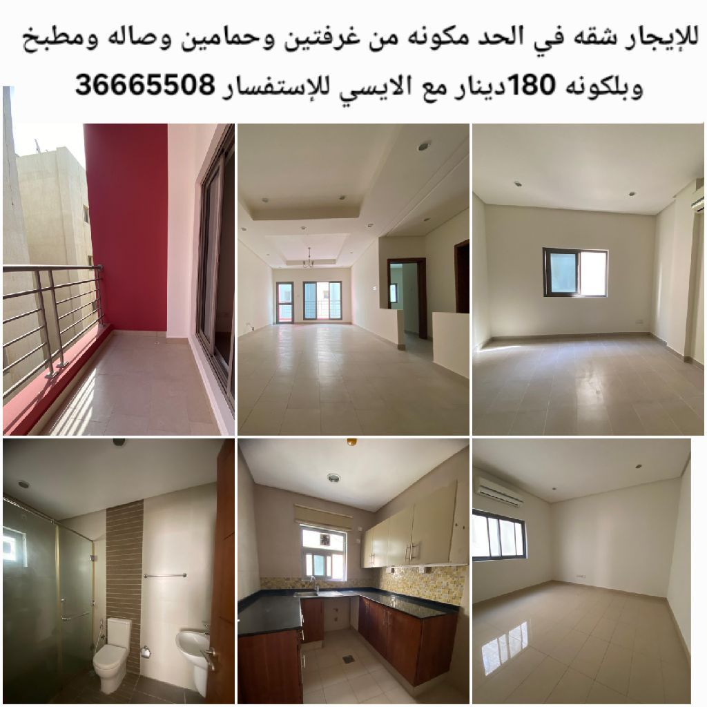 للإيجار شقة في الحد مكونة من غرفتين وحمامين وصالة ومطبخ وبلكونة بـ 180 دينار.