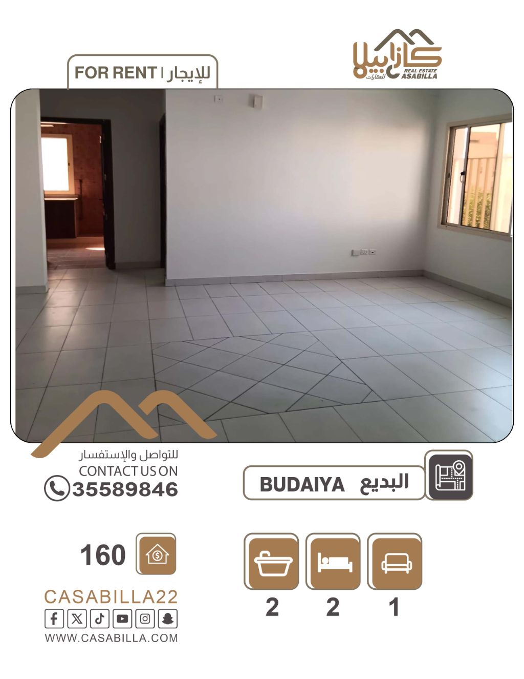 شقة للإيجار في البديع تتكون من غرفتين نوم، حمامين، صالة، مطبخ، مع المكيفات. سعر الإيجار 160 دينار غير شامل الكهرباء والماء. للتواصل والاستفسار.