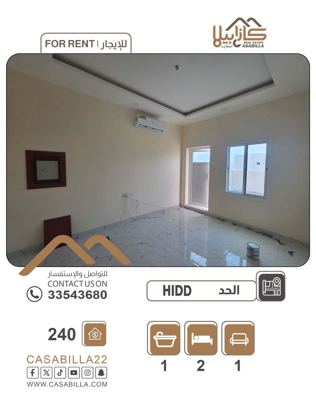 للإيجار: شقة تشمل الكهرباء في الحد، تصلح للموظفين أو عائلة أو مكتب تجاري. التفاصيل: غرفتين، صالة، حمام. المرافق والخدمات: الشقة مع مكيفات هواء ومصعد. تصلح لعائلة أو موظفين أو مكتب. سعر الإيجار: 240 شامل الكهرباء. للتواصل.