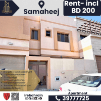 شقة عائلية للإيجار في سماهيج ب 200 دينار بحريني شامل الضرائب بالقرب من المطار. شقة عائلية جديدة تقع في سماهيج، بالقرب من الدير خلف مطار البحرين. غرفتا نوم واسعتان، حمامان، غرفة معيشة، ومطبخ. موقف سيارات متوفر. سهولة الوصول الى المحرق، البسيتين، المطار، وأمواج. الإيجار 200 دينار بحريني شهريا (شامل الضرائب) مناسبة للعائلات