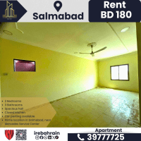 شقة للإيجار في سلماباد. الإيجار 180 دينار بحريني شهرياً. غرفتا نوم، ثلاثة حمامات، غرفة معيشة واسعة، ومطبخ مغلق. يتوفر موقف سيارات. موقع مميز في سلماباد، بالقرب من مركز خدمة مرسيدس. سهولة الوصول إلى سوبر ماركت نيستو، ومستشفى الهلال، والطريق السريع. للتواصل.