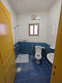 شقة شاملة مع المكيفات للإيجار في عراد، مكونة من 3 غرف وصالة صغيرة وحمامين ومطبخ، بسعر 220 دينار.