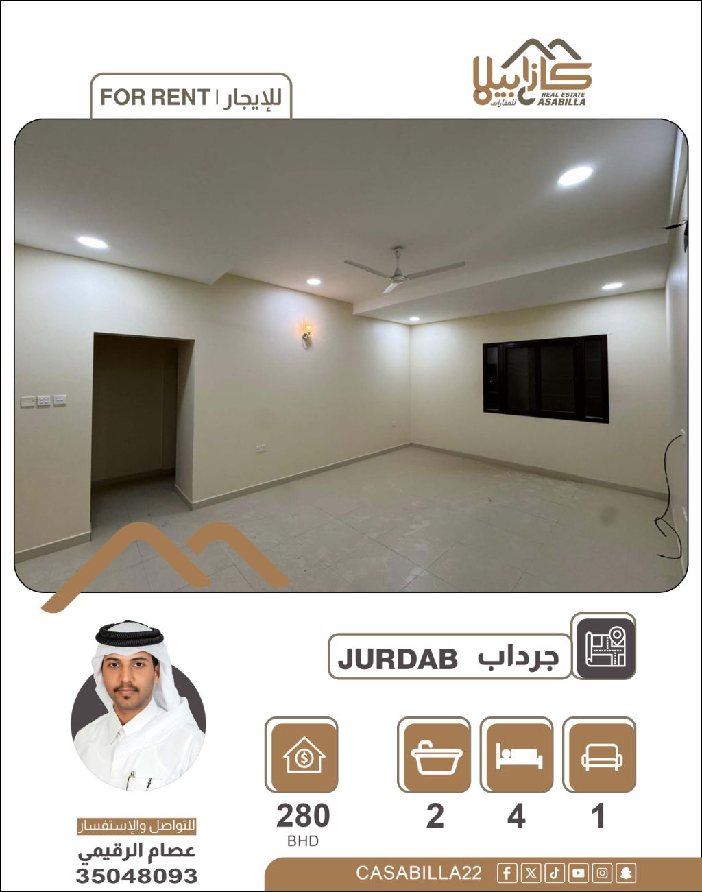 للإيجار: شقة مميزة في جرداب - موقع هادئ وراق. شقة جميلة تقع في موقع مميز وهادئ جداً في منطقة جرداب، مناسبة للعائلات وقريبة من جميع الخدمات الأساسية. مواصفات الشقة: 3 غرف نوم واسعة + غرفة صغيرة - 2 حمام - صالة واسعة ومشرقة - مطبخ عملي بمساحة جيدة - بلكونة. المرافق والخدمات: مكان مخصص للغسيل - مصعد - مواقف سيارات مظللة - مبنى مراقب بالكاميرات - منطقة سكنية هادئة وراقية. سعر الإيجار: 280 دينار شامل الكهرباء.
