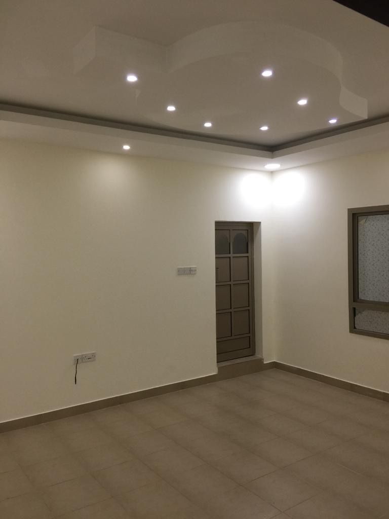 شقة للإيجار في الرفاع الحجيات، تشمل 3 غرف، صالة، مطبخ، 3 حمامات، موقف سيارات. السعر 280 دينار، يشمل الكهرباء والماء