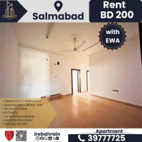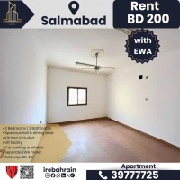 شقة سكنية للإيجار - سلماباد. الإيجار: 200 دينار بحريني (يشمل الكهرباء والماء). غرفتا نوم، حمامان - صالة واسعة ومنطقة طعام - مطبخ مجهز - مصعد - موقف سيارات - عداد كهرباء وماء منفصل - الحد الأقصى للكهرباء والماء: 40 دينار بحريني - سهولة الوصول إلى توبلي، عالي، جسر السعودية.