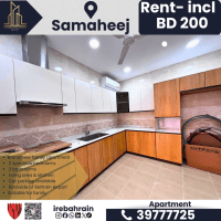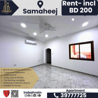 شقة عائلية جديدة للإيجار في سماهيج بالقرب من المطار. تحتوي على غرفتي نوم واسعتين، حمامين، منطقة معيشة، ومطبخ. مواقف سيارات متوفرة. سهولة الوصول إلى المحرق والبسيتين والمطار وأمواج. الإيجار 200 دينار بحريني شهرياً (شامل فواتير الماء والكهرباء). مناسبة للاستخدام العائلي.