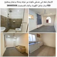 للإيجار شقة في جد علي، مكونة من غرفة وصالة وحمام ومطبخ، بسعر 150 دينار شامل الكهرباء والماء. للاستفسار.