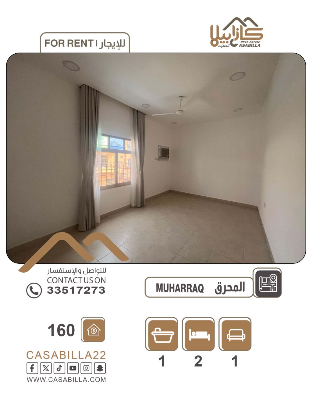 للإيجار: شقة نظيفة ومفروشة في المحرق، قريبة من شارع المطاعم وحديقة القزينية. تحتوي على غرفتي نوم، حمام، مطبخ، وصالة. يوجد موقف سيارات. قريبة من الخدمات والمجمعات التجارية والمطاعم والمدارس والمسجد. الإيجار 160 دينار بحريني، غير شامل الكهرباء والماء. للتواصل.