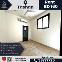 شقة للإيجار في تاشان، خميس - 160 دينار بحريني. غرفتا نوم، حمامان، صالة، مطبخ مغلق. مكيفات سبليت في غرف النوم والصالة. عداد كهرباء ومياه مستقل. بالقرب من إشارة خميس، سهولة الوصول إلى دانا مول، لولو، سوبر ماركت الهلي. الإيجار 160 دينار بحريني شهرياً (لا يشمل الكهرباء والماء). للتواصل.