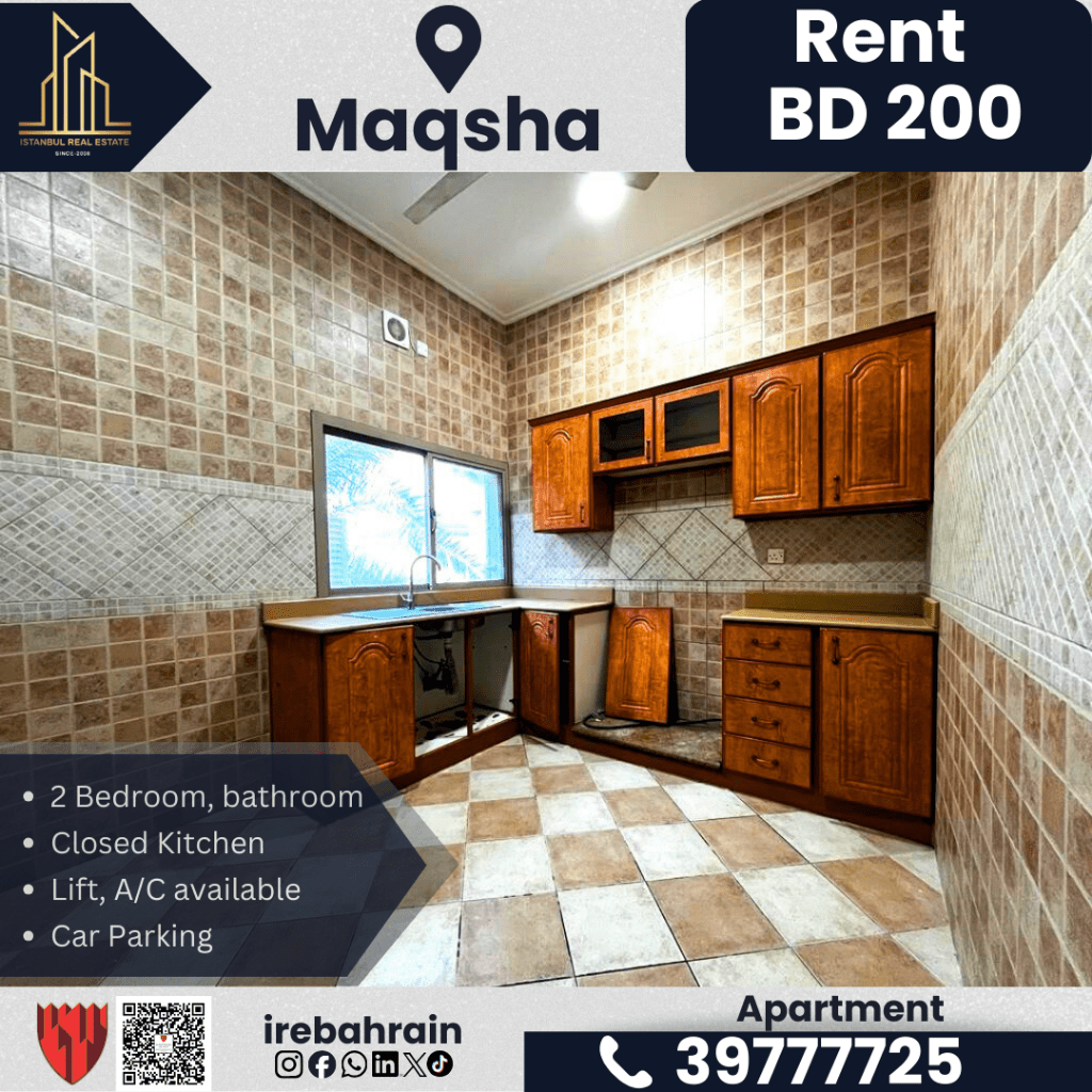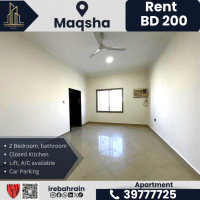 شقة للإيجار في الم قشة (طريق البديع) بـ 200 دينار بحريني. غرفتا نوم، حمامان، صالة، مطبخ مغلق، مكيف هواء، مصعد، موقف سيارات، أمن على مدار الساعة. بالقرب من كانتري مول، سهولة الوصول إلى البديع والسيف وجسر المملكة العربية السعودية. الإيجار 200 دينار بحريني شهرياً (لا يشمل رسوم الكهرباء والماء). للتواصل.