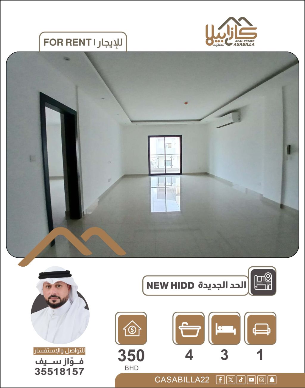 للإيجار: شقة فاخرة وواسعة في منطقة الحد الجديدة، تتكون من 3 غرف نوم، صالة عائلية كبيرة، غرفة خادمة، 4 حمامات، مطبخ فاخر مجهز بفرن وشواية وميكروويف، تكييف سبليت، بلكونتين واسعتين. السعر: 350 دينار، غير شامل الكهرباء. للاستفسار.