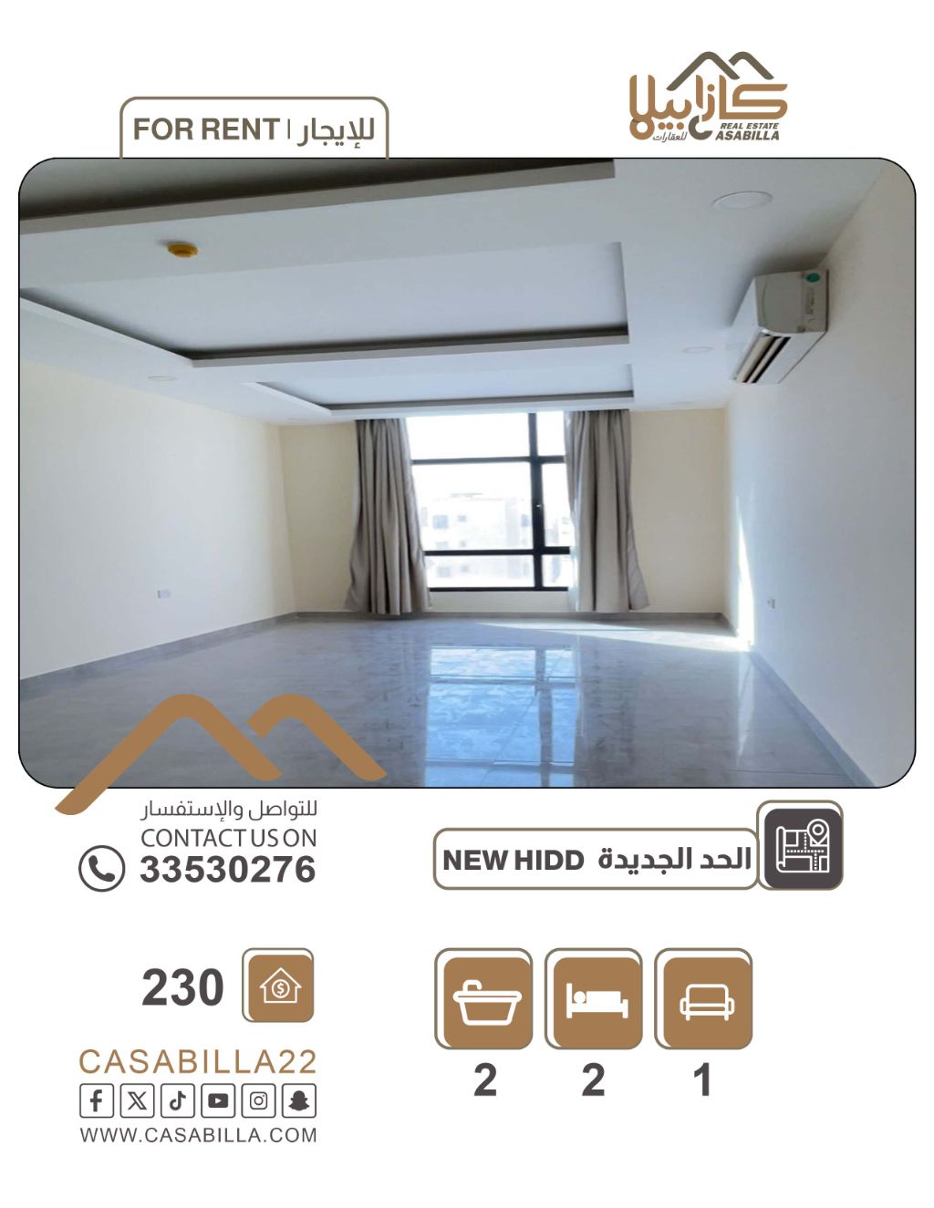 رحابة السكن العائلي في قلب الحد الجديدة. اكتشف الراحة في شقة مصممة خصيصاً للعائلات التي تبحث عن المساحة والعملية. تتميز الشقة بصالة واسعة جداً تمنحك خيارات متعددة للتأثيث، وتقع في موقع استراتيجي في الحد الجديدة بالقرب من كافة المرافق والخدمات الأساسية، مما يضمن لك ولعائلتك تجربة سكنية مريحة وبسعر قابل للتفاوض. مواصفات الشقة: صالة كبيرة - مطبخ - غرفتان نوم - حمامان بدون كهرباء وماء. السعر: 230 دينار بحريني.