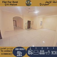 للإيجار: شقة كبيرة في الرفاع - الحجيات تحتوي على 4 غرف نوم، 3 حمامات، مطبخ، صالة، وموقف سيارة. السعر: 280 دينار بحريني (بدون كهرباء) أو 330 دينار بحريني (شامل الكهرباء لحد 50 دينار). للتواصل: مكتب البرج الجديد للعقارات.