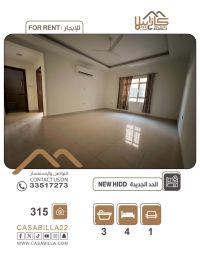 للإيجار: شقة في منطقة الحد الجديدة مع مكيفات وستائر. تفاصيل الشقة: 4 غرف نوم (2 ماستر)، 3 حمامات، مطبخ، صالة، مكيفات. المرافق والخدمات: موقع مميز، قريبة من الخدمات، موقف مظلل، مصعد، حارس. سعر الإيجار: 315 بدون كهرباء وماء. للتواصل.