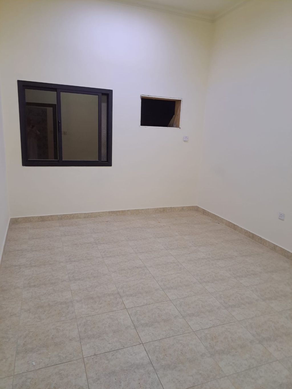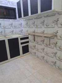 شقة للإيجار في البسيتين، مكونة من غرفتين، صالة، مطبخ، وحمامين. السعر 220 شامل الكهرباء والماء