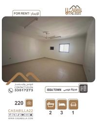 للإيجار: شقة في مدينة عيسى، بناية نظيفة. تفاصيل الشقة: 3 غرف كبار (1 ماستر)، 2 حمام، مطبخ، صالة، بلكونة. المرافق والخدمات: موقع مميز، قريبة من الخدمات، برك مظلل، حارس. سعر الإيجار: 220 بدون الكهرباء والماء. للتواصل.