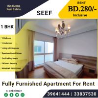 شقة مفروشة بالكامل تتكون من غرفة نوم وصالة ومطبخ وحمام للإيجار في منطقة السيف بسعر 280 دينار بحريني شاملة الكهرباء والماء بحد أقصى 25 دينار. تقع الشقة بالقرب من مجمع السيف وتتكون من غرفة نوم وحمام وصالة واسعة ومطبخ مفتوح واسع ومصعد وموقف سيارات مغطى وأمن 24 ساعة. سهولة الوصول الى مجمع السيف وسيتي سنتر والدانة مول والسنابس والمنامة وجسر السعودية. للاستفسار يرجى الاتصال.