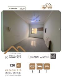 للإيجار: شقة في مدينة عيسى، خلف روضة الفاروق. تتكون من غرفتين وصالة وحمام وبارك مظلل. المنطقة هادئة وقريبة من الخدمات والمجمعات التجارية والمطاعم والمدارس. الإيجار 120 دينار بحريني، غير شامل الماء والكهرباء. للتواصل.