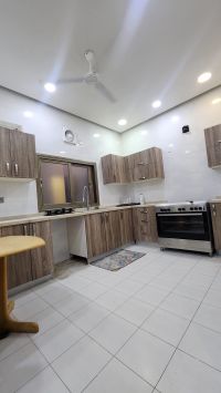 للإيجار في الحجيات، شقة تشمل الكهرباء والماء ورسوم البلدية مع مكيفات، تتكون من 4 غرف ومجلس ومطبخ وصالة و4 حمامات و2 موقف سيارات بسعر 400 دينار بحريني.