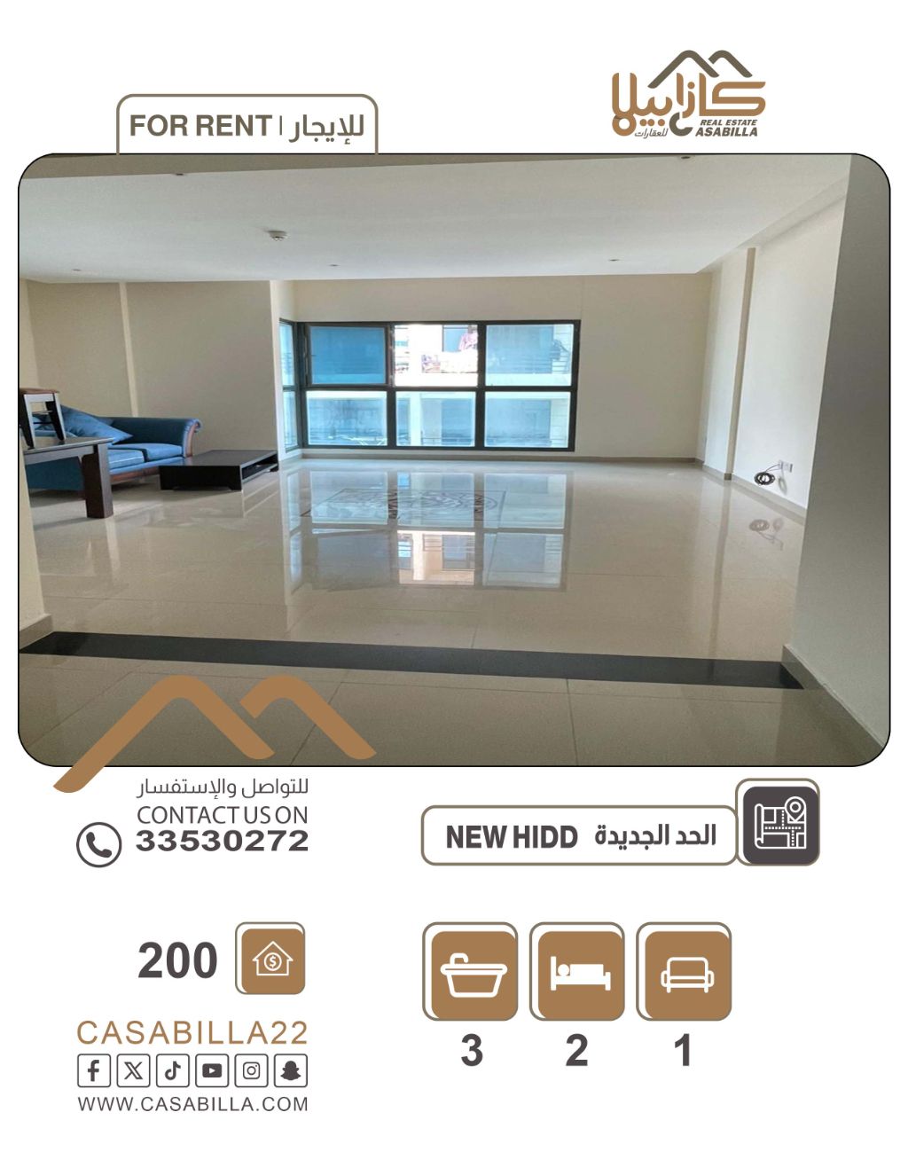 للإيجار: شقة في الحد الجديد، مناسبة للعائلات وقريبة من جميع الخدمات. مواصفات الشقة: غرفتان نوم، صالة، مطبخ، 3 حمامات، مع تكييف، مصعد، وموقف سيارة. سعر الإيجار: 200 دينار بحريني بدون كهرباء. للتواصل والاستفسار.