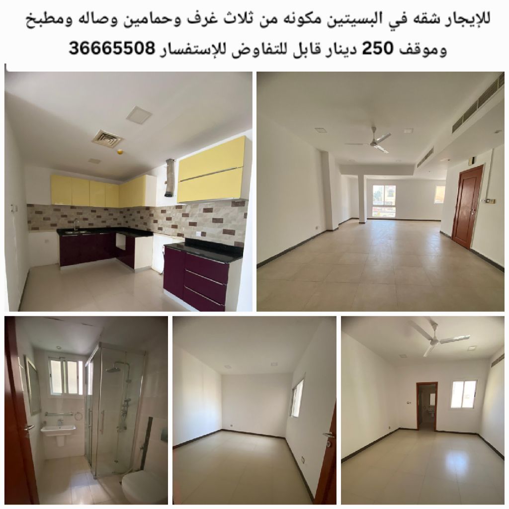 للإيجار شقة في البسيتين مكونة من ثلاث غرف وحمامين وصالة ومطبخ وموقف 250 دينار قابل للتفاوض للاستفسار