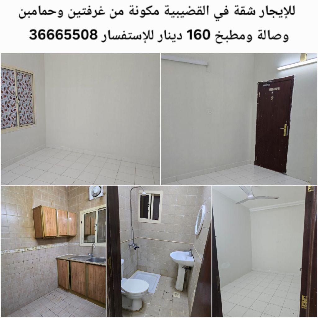 للإيجار شقة في القضيبية مكونة من غرفتين وحمامين وصالة ومطبخ بسعر 160 دينار