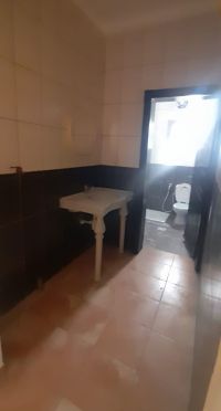 Apartment for rent in Jid Ali, 3 bedrooms, 2 bathrooms, living room, and kitchen, first floor, without electricity and water, 180 dinars.