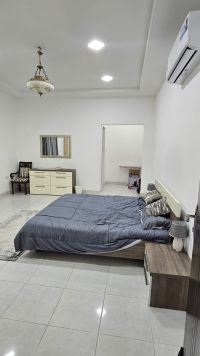For rent, a fully furnished apartment in the Sanad area, with electricity and air conditioning, consisting of two bedrooms, two bathrooms, a hall, a kitchen, an elevator, and parking spaces. Seize the opportunity. rent is 350 dinars. Maximum consumption is 50 dinars. For serious renters, contact