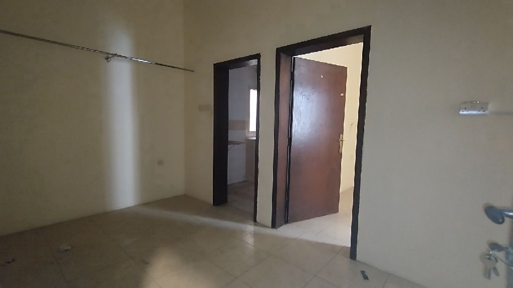 Ras Rumman, close to the American Mission Hospital. Ground floor 1BHK unfurnished flat for rent. BD130 without EWA. Includes a small hall, 1 bedroom, 1 bathroom, and a closed kitchen. Reference number K050505. Contact for details
