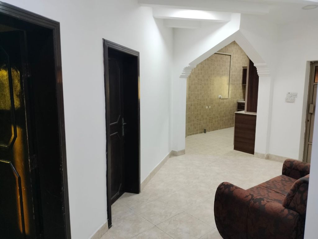 For rent: An apartment in the Jid Ali area, containing two bedrooms, two bathrooms, a living room, and a kitchen. Includes electricity and water with no additional fees. The price is 200 dinars, located on the second floor, with an elevator and parking available.