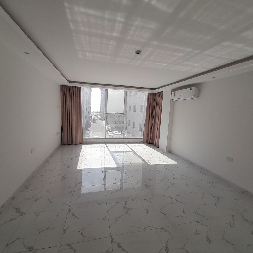 For rent, a luxurious, semi furnished apartment in Hidd - 3 bedrooms, 3 bathrooms, a kitchen, a hall, a maid's room, an elevator, and a parking space, for 300 dinars. Contact
