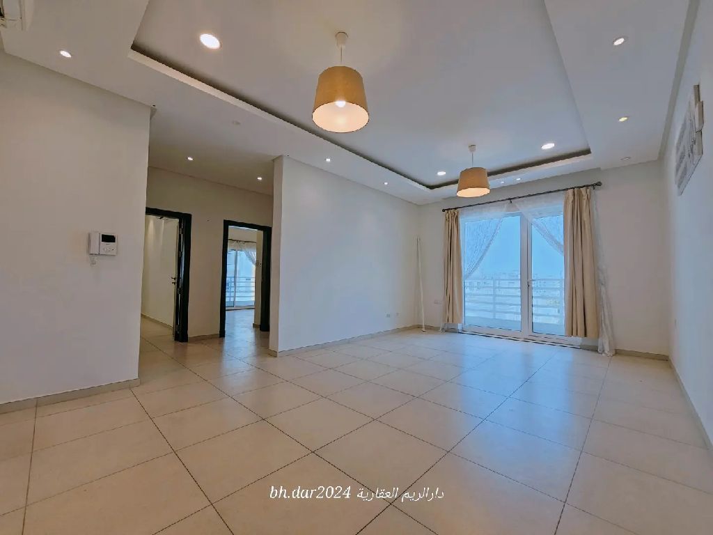 Al-Hidd City / A luxurious semi-furnished apartment for rent, consisting of two bedrooms, two bathrooms, a spacious living room, a kitchen, two balconies, and a parking space. The rental price is 250 dinars excluding electricity. For inquiries, please call.