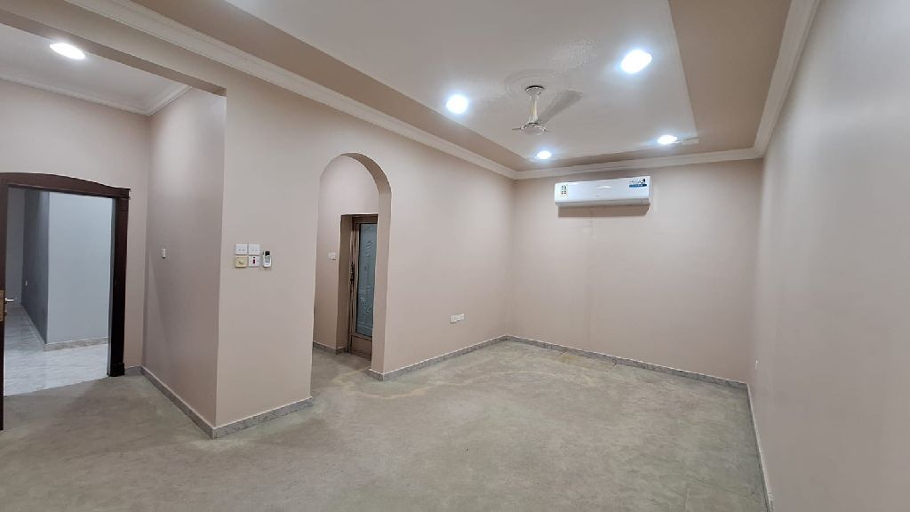For rent, an apartment in Isa Town, consisting of a hall, two rooms, two bathrooms, a kitchen, and a balcony. The apartment is fully air - conditioned, including electricity, and the rental price is 250 Bahraini dinars