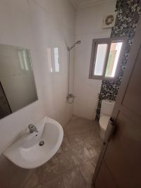 For rent an apartment in Muharraq with 3 rooms, a hall, two bathrooms, and a kitchen for 140 dinars excluding electricity and water. With parking and elevator for contact