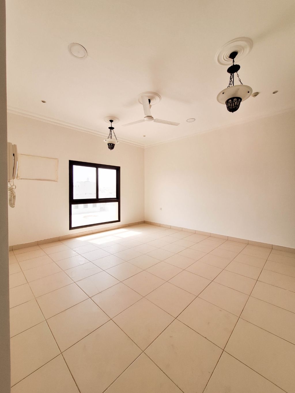 An apartment for rent in the Jeballa Habshee area, consisting of two bedrooms, two bathrooms, a living room, a kitchen, and a parking space. The monthly rent is 180 Bahraini dinars. Reference AH - FR 01853 for inquiries. Please contact the following numbers