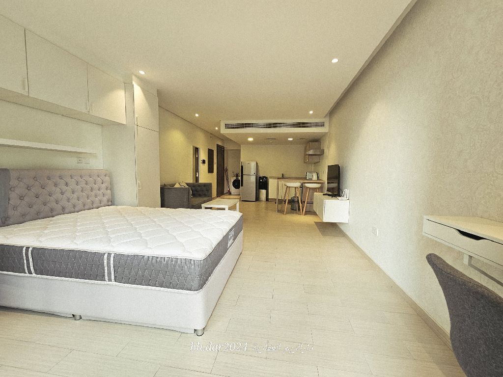 In the city of Bseiteen, a fully furnished apartment is available for rent. It is located near the Irish University and King Hamad University Hospital. It consists of one bedroom, one bathroom, a kitchen, a balcony, and parking spaces. Services include a gym, swimming pool, and a children'play area. The price is 280 dinars including electricity. For contact, please call