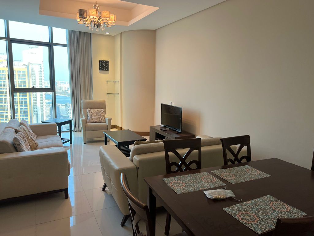 Luxurious Seef apartment for rent with a sea view. High-rise, fully equipped. Live in the heart of Seef with stunning views of the sea and canal from this distinguished one-bedroom apartment, just steps away from City Centre Mall. Ideal for professionals and couples seeking luxury and comfort. Apartment features include one spacious bedroom, 1.5 bathrooms, a semi-enclosed fully equipped kitchen, and it is fully furnished.