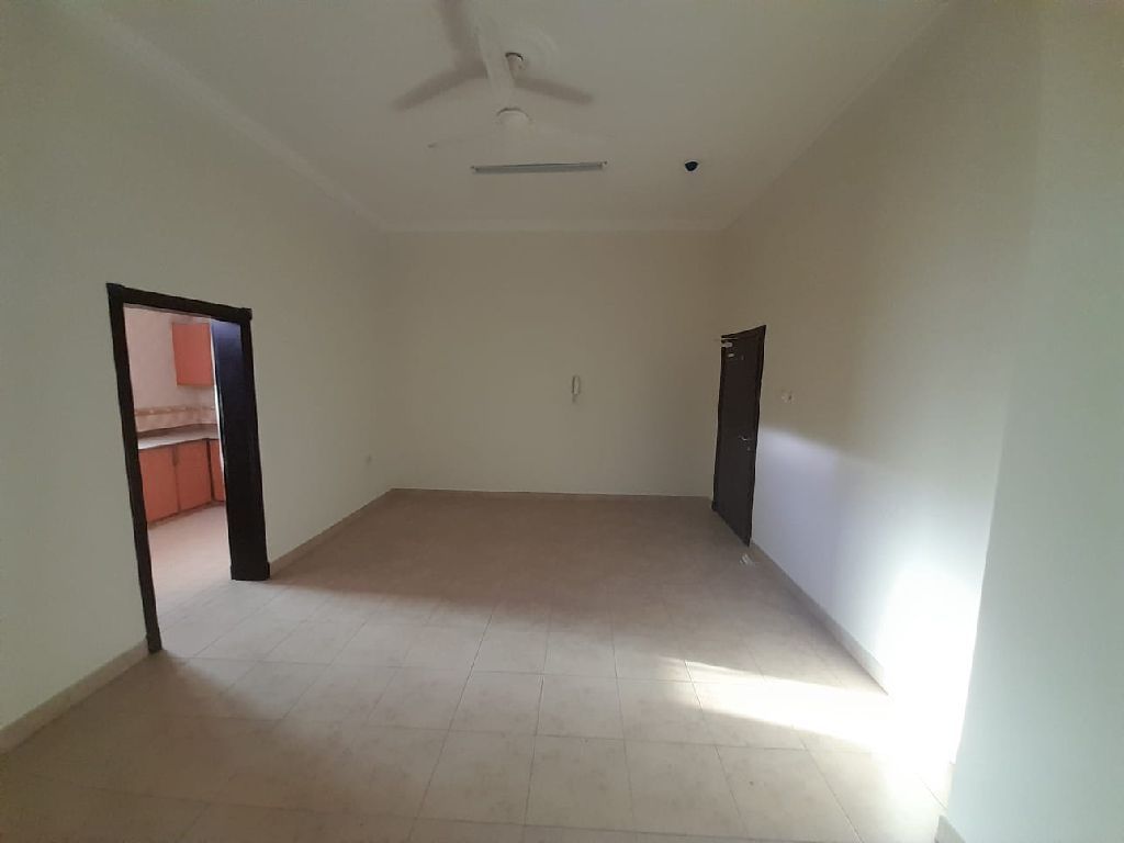 For rent, a large apartment in Arad with two bedrooms, two bathrooms, a kitchen, a living room, a balcony, an elevator, and a parking space for 180 dinars. For contact, Al Burj Al Jadeed real estate