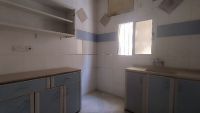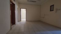 Sanabis ground floor 2BHK unfurnished flat for rent. BD220 with unlimited EWA. Includes a hall, 2 bedrooms, 2 bathrooms, a closed kitchen, and a small outdoor space. Reference number K260401. Contact for details