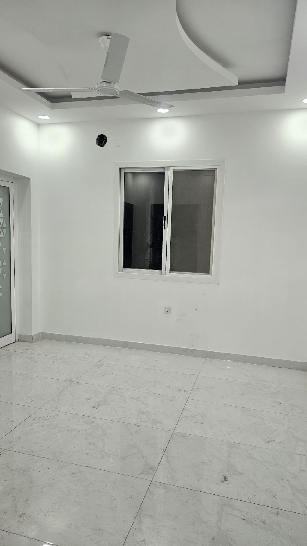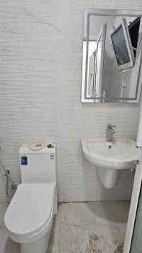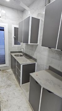 For rent: A new apartment, first occupant, in Al-Hadd Al-Jadeed near Nuh Tower. It consists of two rooms, a living room, a bathroom, a kitchen, a balcony, parking, and an elevator. The required rent is 250 dinars per month, including electricity. The electricity bill is 50 dinars.