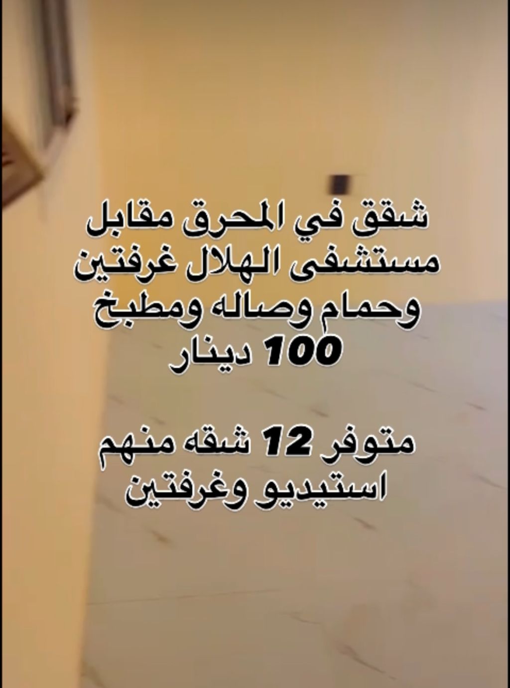 Apartments in Muharraq opposite Al Hilal Hospital, two rooms, bathroom, hall, and kitchen, 100 dinars not inclusive, 12 apartments available including studio and two-bedroom apartments.