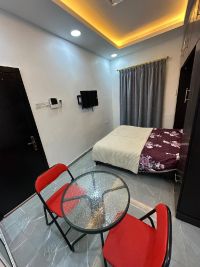 Luxury studio for rent in Al Qudaibiya - behind Bahrain Buraid markets - Ground floor - Close to services (markets, banks, restaurants) next to Bahrain Buraid markets and Al Zubara main street. One bedroom, closed kitchen, one bathroom, fully furnished with elegant furniture. Rent price 180 Bahraini dinars inclusive of electricity (unlimited). The following services: surveillance cameras, intercom, periodic maintenance, annual contracts, family building, internet.