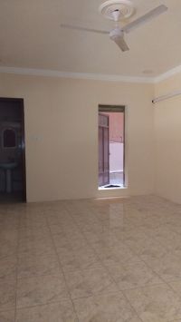 A clean apartment for rent on a high ground floor, consisting of four rooms, three bathrooms, a hall, and a kitchen in Riffa Al Hajiyat, near the women's houses. The monthly rent is 250 dinars excluding electricity and water. For families only. For inquiries.